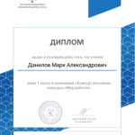 По итогам конкурса Марк занял почетное первое место и был награжден заслуженным дипломом. Это яркое свидетельство его творческого потенциала, усердия и глубокого понимания темы.