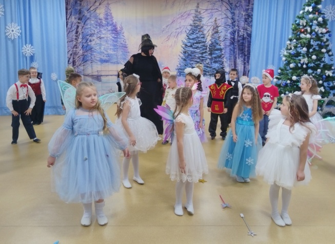 А для ребят постарше, из подготовительной группы № 9, был подготовлен настоящий сюрприз – увлекательное представление с коварной королевой Диссоной, которая пыталась испортить праздник, но, конечно же, не смогла одолеть силу дружбы и новогоднего волшебства!