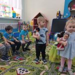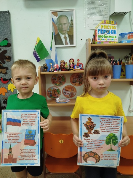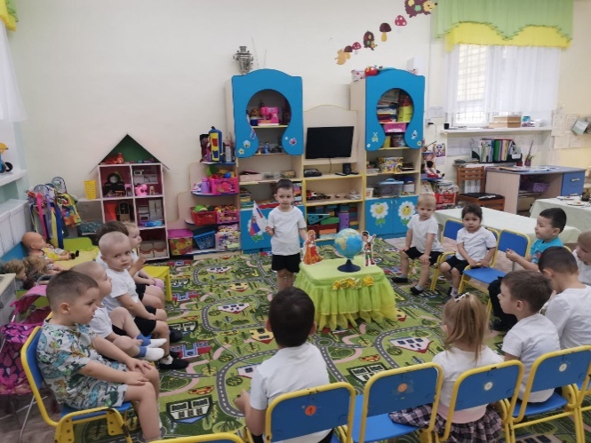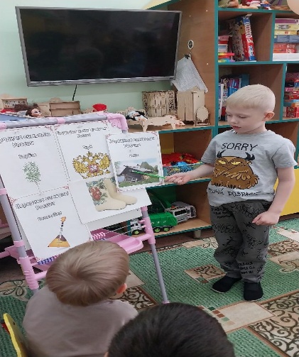 Воспитанники всех групп имели возможность посетить специально оформленный патриотический уголок. Там они прослушали интересные беседы о государственных символах России, приняли участие в дидактической игре «Собери матрешку» и узнали много нового о русских народных костюмах в рамках социально-коммуникативного занятия.