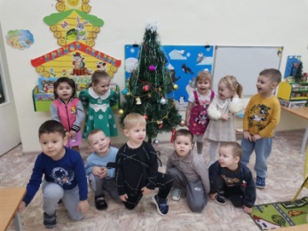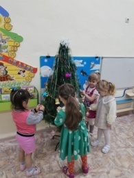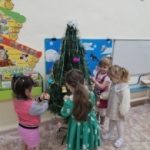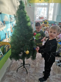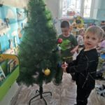 Каждый ребёнок с гордостью повесил на нашу красавицу ту игрушку, которую выбрал сам. Глаза ребят сияли от счастья и предвкушения праздника. Посмотрите, какая чудесная ёлочка у нас получилась!