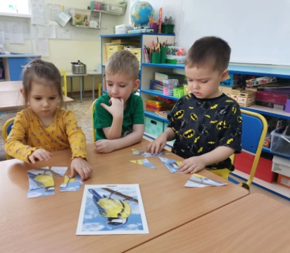 Ребята уже успели познакомиться с некоторыми птицами, которые не улетают на юг. Они узнали об их образе жизни, о том, чем их лучше всего кормить, и почему так важно помогать им каждый день, когда на улице мороз. Дети с увлечением рассматривали изображения птиц, учились различать их по оперению, создавали красивые аппликации из природных материалов, рисовали и собирали картинки-пазлы. Эта неделя прошла ярко, познавательно и с неподдельным интересом со стороны малышей.